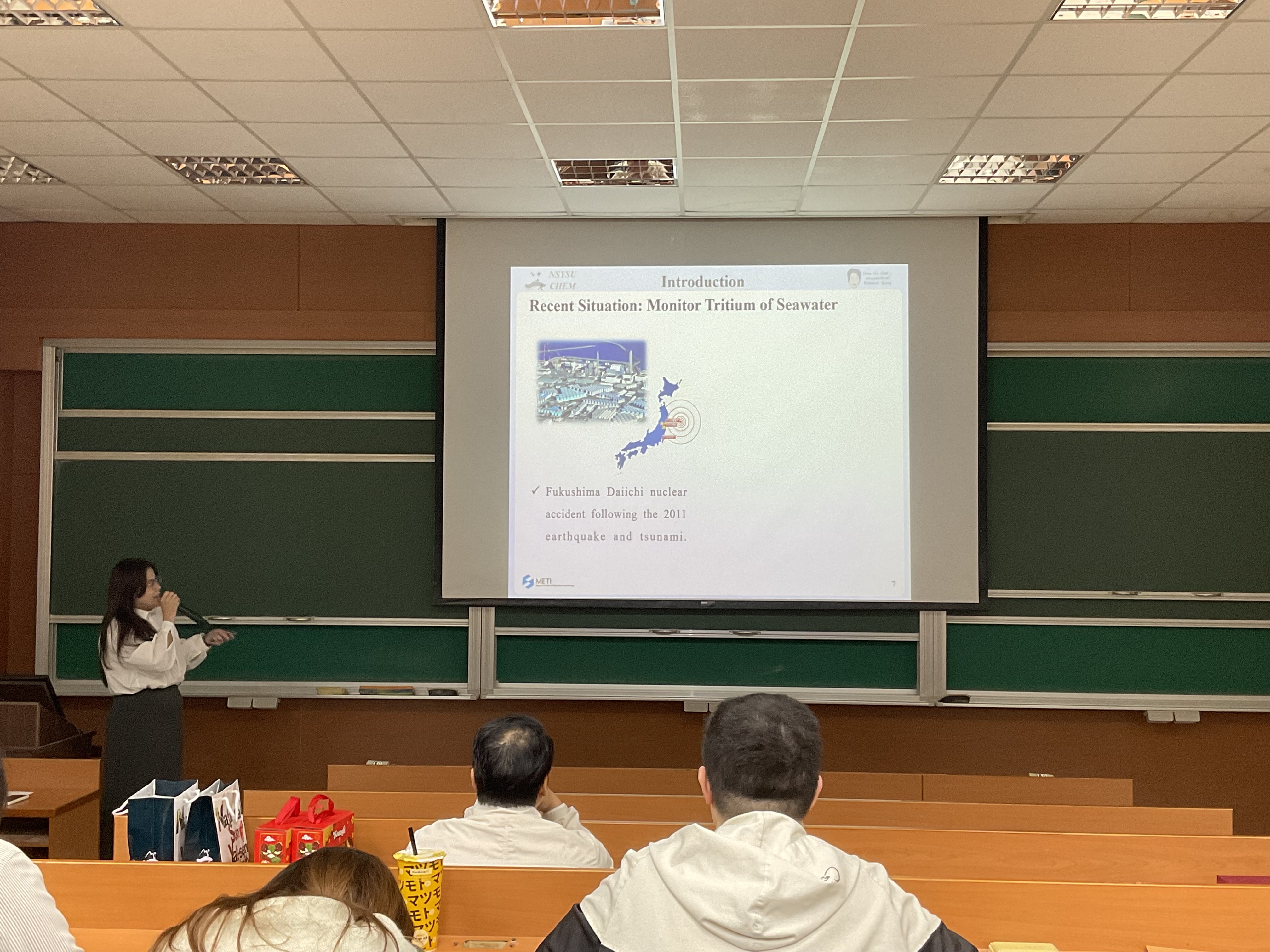 In that join conference, two of our lab members are presenting their works in order to get knowledge exchange with the Professors from USTH. Chi-Yi Lai presented her Tritium enrichment via Seawater Electrolysis, while Hong- Han Huang presented his Crumpled Graphene works with excellent pressure and absorption property.
